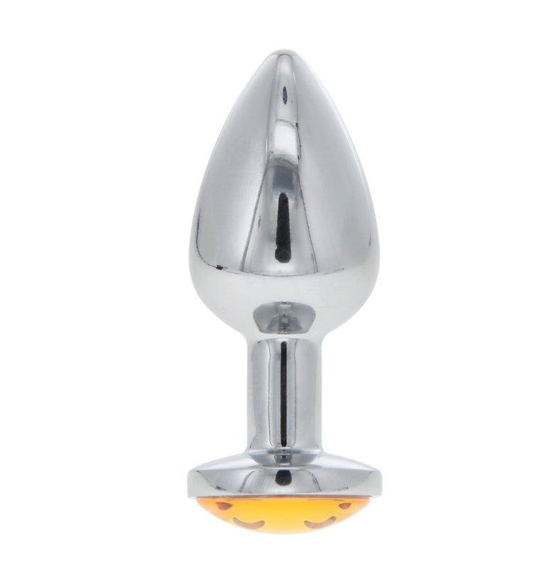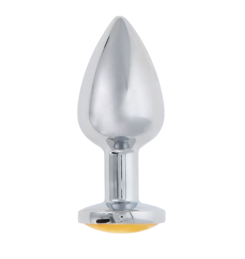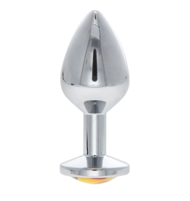 Alloy Butt Plug with Clear Jewel, Stainless Large