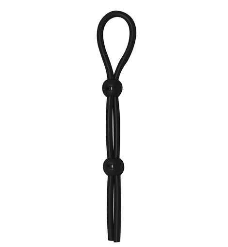 The Double Barrel Long Silicone Lasso Cock Ring in black features a durable ABS plastic button and a 100% silicone strap that offers firm, adjustable support. Designed for comfort and reliability, this cock ring enhances endurance and sensation while allowing a customizable fit to suit your needs. Its high-quality materials ensure long-lasting use and easy maintenance.