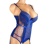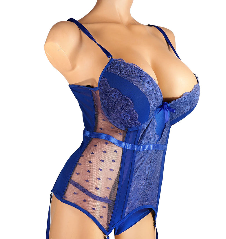 Elevate your lingerie collection with the Internal Love Satin and Mesh Corset in Royal Blue. Expertly crafted, this corset combines luxurious satin with delicate mesh panels for a perfect balance of structure and allure. Its rich royal blue hue enhances elegance, while the fitted design sculpts your silhouette comfortably. Ideal for adding sophistication under attire or as a statement piece, this corset offers both style and confidence with expert tailoring.