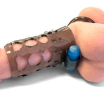 Our Vibrating Dick Sleeve features a bullet vibe and a sleeve that fits around your cock with pleasure nubs and cutouts to help satisfy your partner. A stretchy ring goes around your balls. The easy-to-use vibrating sleeve is truly an erection enhancer, a tool designed for maximum partner stimulation. The retention strap fits behind the scrotum so it will not slip off, no matter how rough your fun gets!