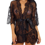 Elevate your intimate wardrobe with the SI Robe & G String in classic black. Crafted for a sleek, flattering fit, this set combines a delicate robe with a matching G-string, offering both comfort and allure. Perfect for special occasions or everyday elegance, it enhances your silhouette while providing effortless style.