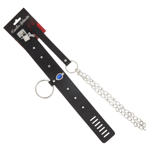 Step up the traditional bdsm game with this quality black leather spiked collar, features 6 spikes, 2 studs and jewel embellishment that line the front and around the neck. 1.5" O-ring at front makes for easy leash attachment, and easily secure-able Gasp latch style lock, not only this is a quality collar but also a fashion statement.