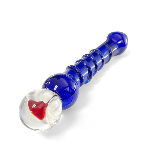 The L-15 Blue is a premium glass massager designed for comfortable and stimulating use. Featuring a spiral textured surface and delicate flower detail, it offers both aesthetic appeal and enhanced sensation. With a total length of 8 inches and an insertable length of 5.75 inches, its widest diameter of 1.25 inches ensures a satisfying fit. Crafted for durability and ease of cleaning, this elegant plug combines functionality with expert design for a refined experience.