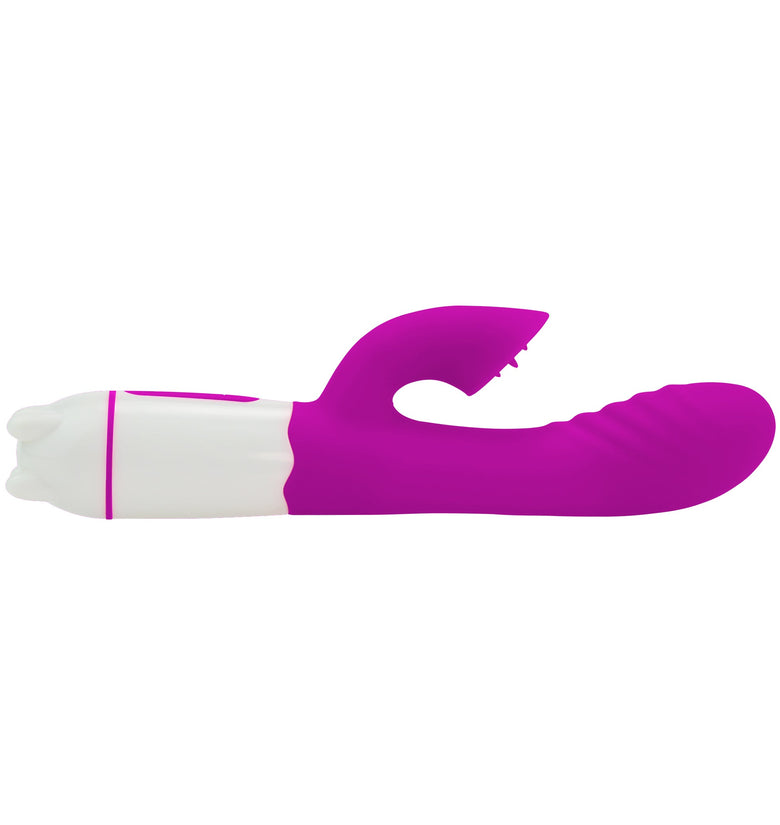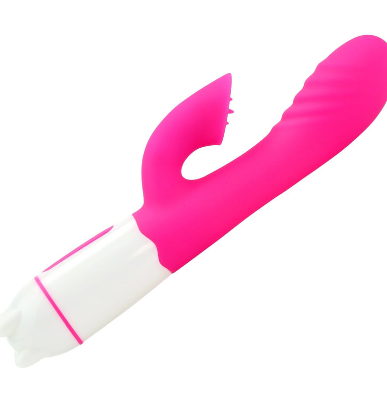 Our Bendable Rabbit Vibrator with Clitoral Licking has a flexible shaft that can bend up to 45 degrees to hug your unique shape and reach all your sweet spots. This sex toy has body-safe silicone construction with dual motors.  One controls the tip of the shaft and the other controls the clitoral stimulator.  This toy actually simulates oral sex!  Enjoy cunnilingus without a partner.  Cycle through 36 different vibration patterns and intensities to select the speeds that thrill you most.  Powerful vibrations will throb up to 100 times per second, arousing you to body-tingling orgasm! Keep your rabbit vibe charged for the next time with the included USB charging cable!