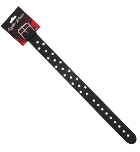 Enhance the mood with this fierce fetish collar by 53X! This black PVC collar has a medium width with three rows of hollow rivets as a finished look or to add your own charms. The matching buckle strap allows for an adjustable fit and easy removal.