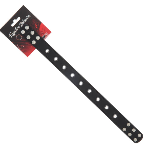 Feel like the star you are while wearing this studded fetish collar by 53X! Glinting rivets trail along the length of this black premium PVC band. Simply find your desired size with the adjustable snap-buttons in the back for easy dress-up and removal.