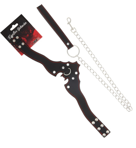 Step up the gothic fantasy element in your BDSM game with this quality faux leather bat collar, featuring a bat clinging to the front of your throat. The 1.5" D-ring on the bat make it easy to attach the matching leash. Easily adjust your blood sucking friend to the desired fit with the nickel-free snaps.