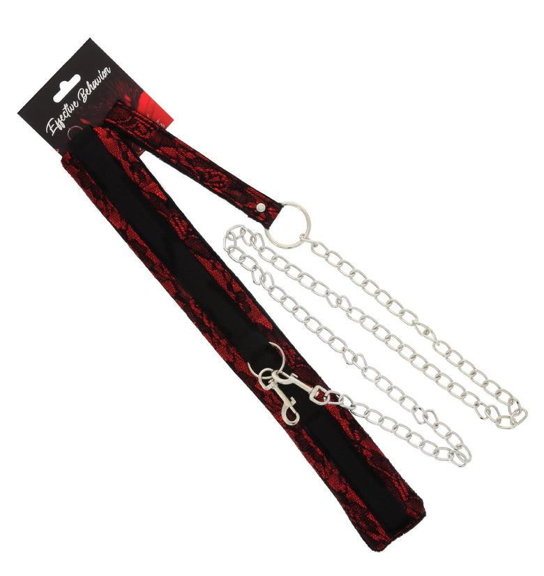Pair it with your lacy lingerie, or nothing at all—you can never go wrong with this beauty. It exudes the voguish fashion sense of the 1800s with its intricate design and fine craftsmanship. The back fastens with the adjustable buckle strap for a true fit. A single bondage D-ring is located at the front of the collar to attach the matching lace chain leash.