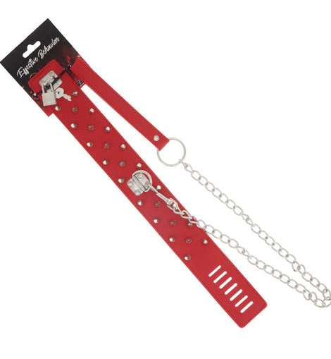 • COLLAR RED W/RIVIT SPIKES AND LEASH