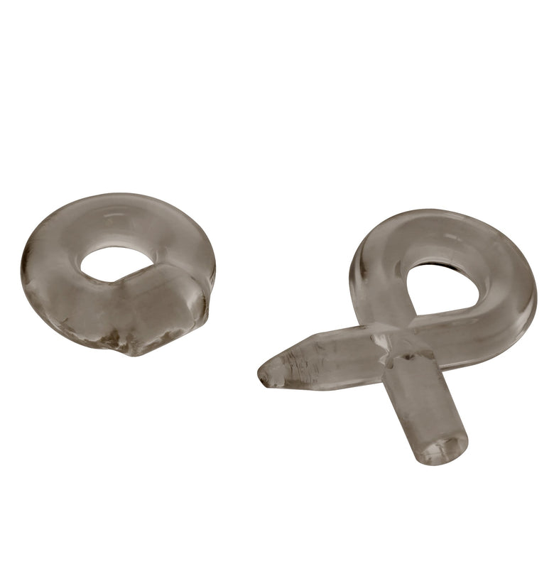 Our Double Cock Ring Set will help you achieve harder and stronger erections!  This set of cock rings shaped like X and O gives you two different styles of rings in one package.  Use them alone or together on your dick, or put one on your penis and one around your balls.  This cock ring set is sure to please both partners!