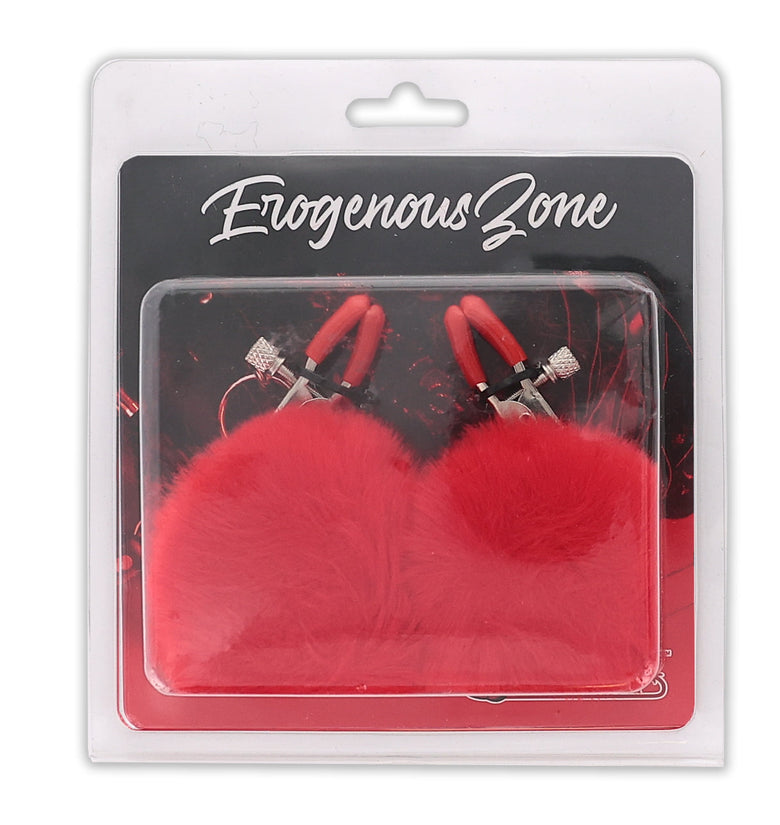 Enhance intimate sensations with the Erogenous Zone Rabbit Tail Nipple Clamps in red. Designed for precise pressure, these clamps stimulate sensitive areas while the attached soft rabbit tail adds a playful, tactile element. Crafted for comfort and control, they offer adjustable tension to suit your preference, making them ideal for exploring new levels of pleasure safely and confidently.