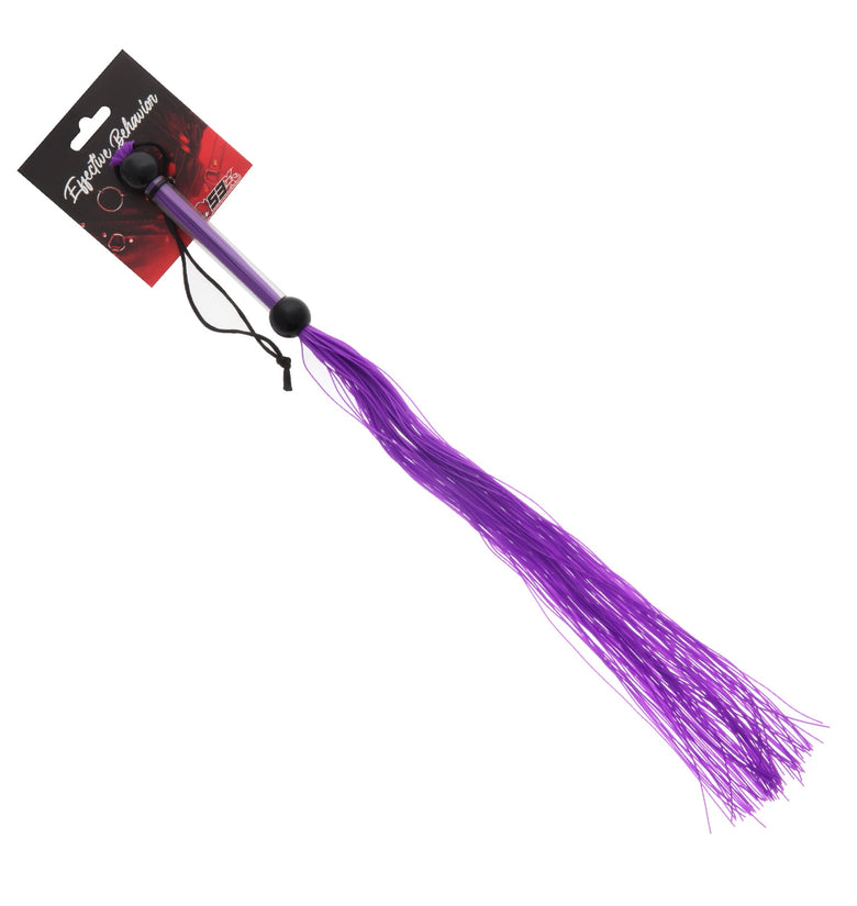Deliver teasing flicks with just a swish of this lightweight flogger by 53X! The tails are made of body-safe rubber and are threaded through a bead neck and clear plastic handle. Just loop the cord around your wrist for a more solid grip during your play session!