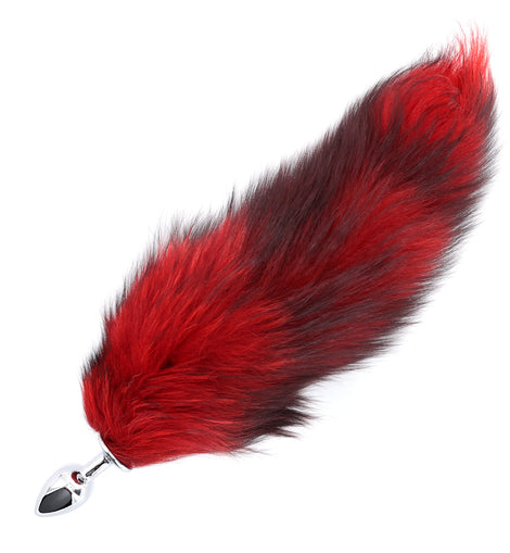 Unleash your wild side with our FOX TAIL RED/BLACK anal plug! Made with a stainless steel base and an 11 inch, soft and authentic fox tail, this plug adds a playful touch to your bedroom activities. With a 3 inch height and 2.5 inch insertable length, it's perfect for both beginners and experts. Show off your animal instincts and enjoy the thrill of control!