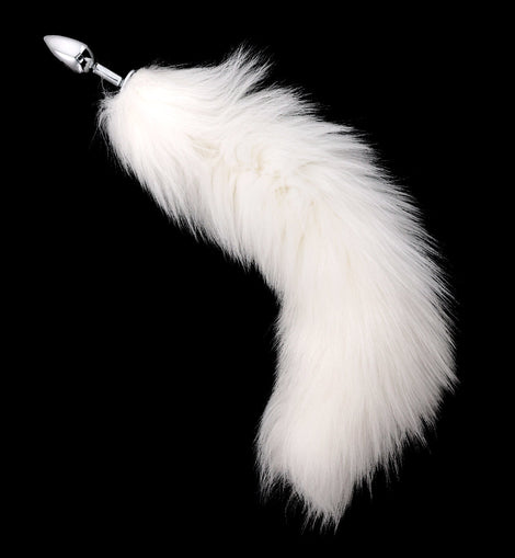 Discover your wild side with FOX TAIL WHITE! This authentic fox tail and stainless steel anal plug add a sensual touch to your intimate moments. The soft and erotic tail measures 11 inches, while the plug is 3 inches tall with a 2.5 inch insertable length and a 1 inch diameter. Enjoy control and sensation with this unique product. Please note, each tail may vary slightly in length and color for an exclusive experience.