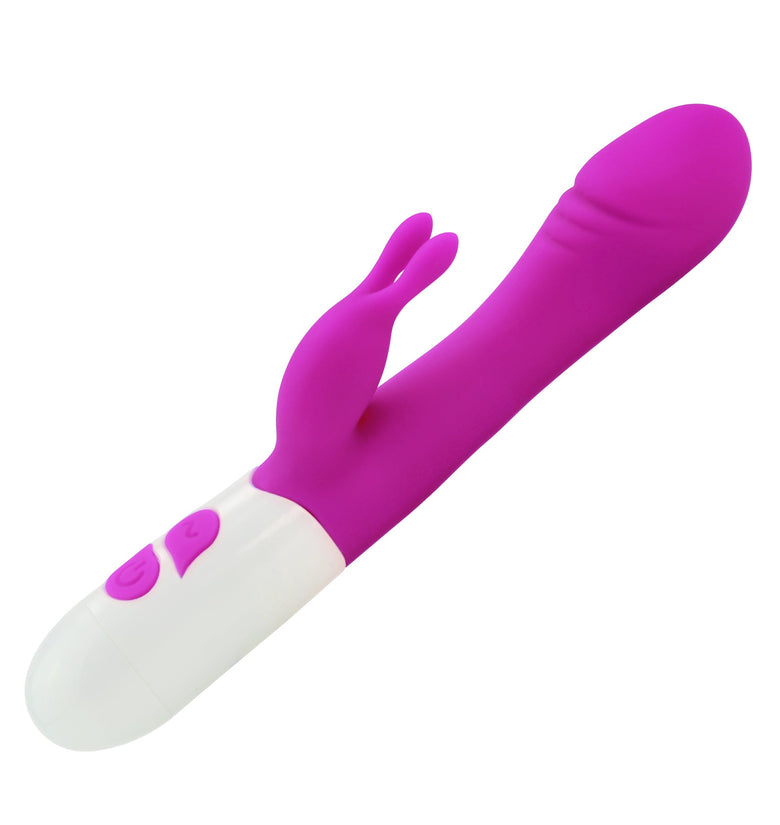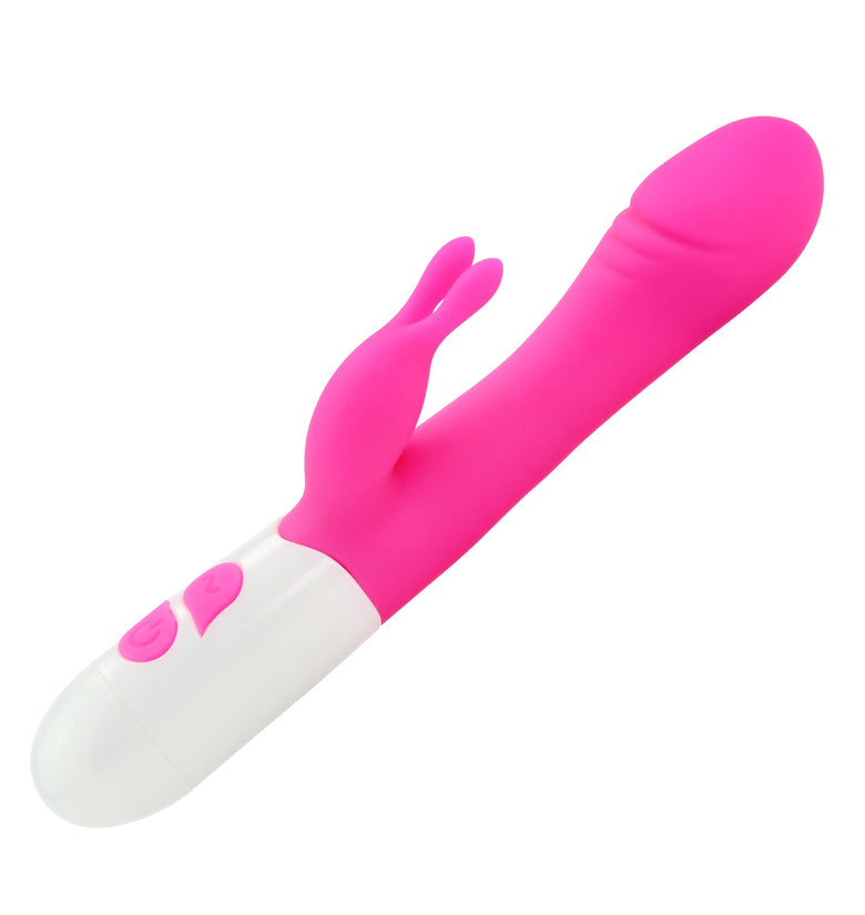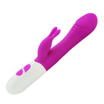 Our G-Spot Rabbit Vibrator features 2 powerful motors inside the base and tip of the shaft, providing intense stimulation to your pleasure zones. Tease your sweet spots with this fun take on the classic rabbit vibrator. The soft textured silicone finish increases your arousal, along with the 20 unique vibration patterns. The double-eared clitoral stimulator flexes to fit your unique shape while the tip of the shaft has a realistic head for maximum G spot stimulation.