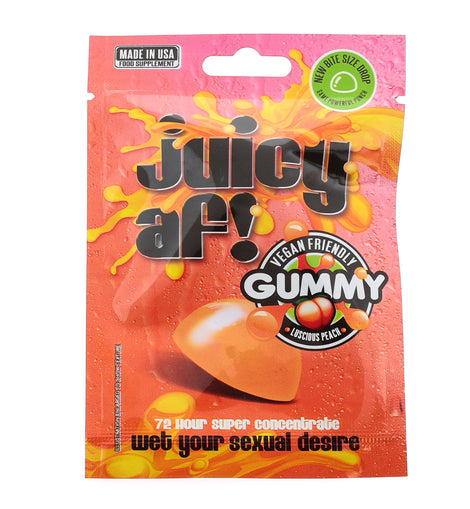 JUICY AF GUMMY FEMALE SUPPLEMENT is a potent 72-hour concentrate designed to naturally enhance female arousal. This expertly formulated gummy supports increased sexual desire, promotes natural wetness, and intensifies orgasms, helping women experience heightened pleasure and a boosted sexual appetite. Perfect for those seeking to invigorate their intimate moments and get their juices flowing with confidence.