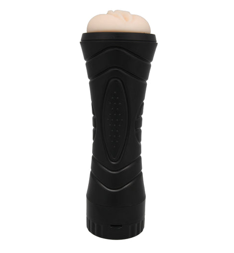This super tight pussy is ready and waiting for you to give her what she wants! This handheld vibrating stroker has a super tight chamber with extra ribs for an explosive feel all the way around your shaft. Go deep with the long canister and turn on the vibration for even more stimulation. Twist the bottom cap tighter or looser for a suction sensation you won’t be able to get enough of!